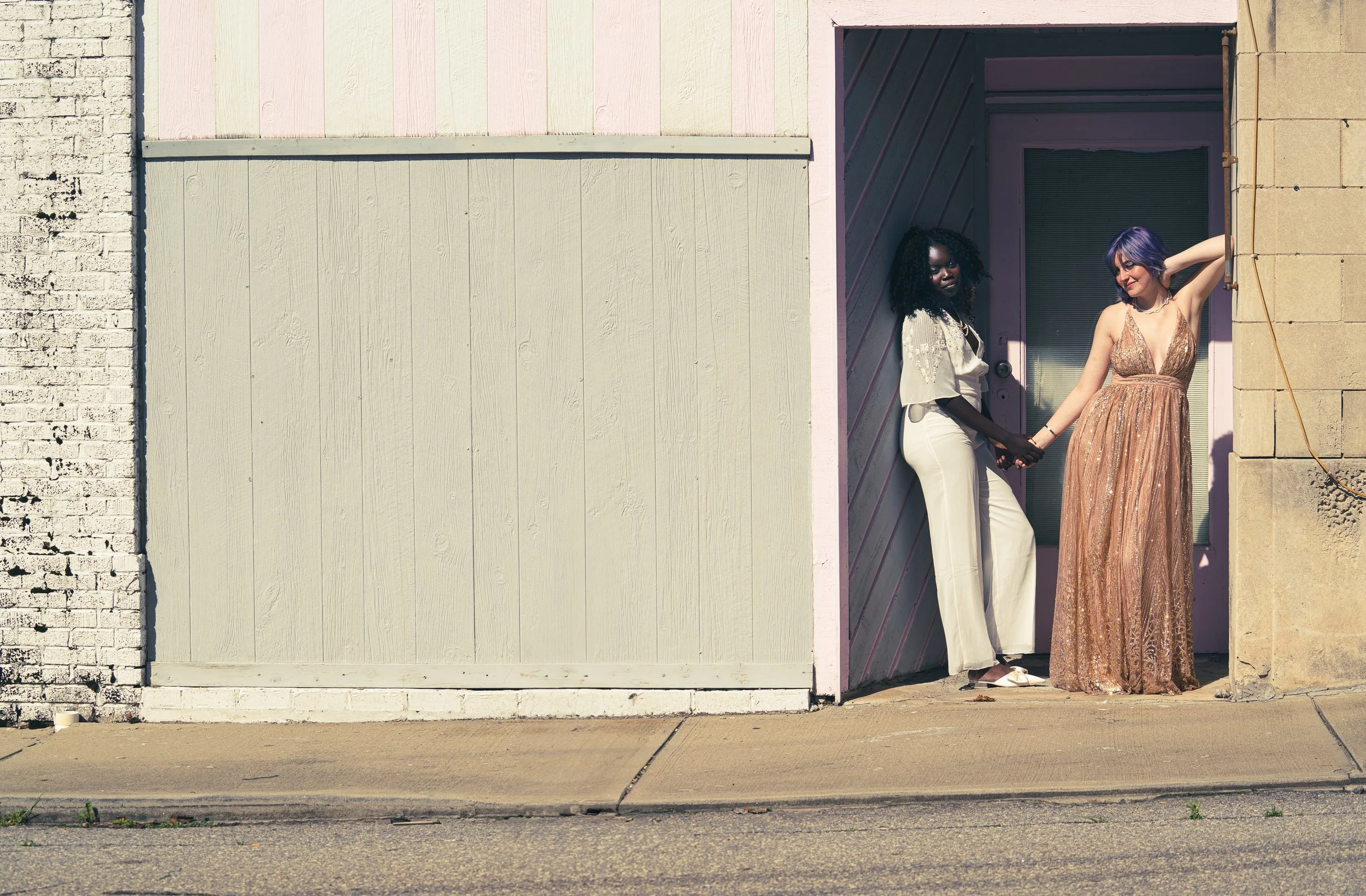Either lay out your outfits side by side, or try them on next to each other and look in a mirror. Staying in color families or working with complimentary colors can be helpful, but you don’t need to match! You and/or your partner may tend to wear t-shirts and jeans, and maybe you want to dress up for your photos. Just make sure you’re still comfortable in whatever you choose to wear. This isn’t the time to break in new shoes! If you decide to wear high heels, maybe bring a change of shoes too. Not all your photos need to be full length and include your feet.