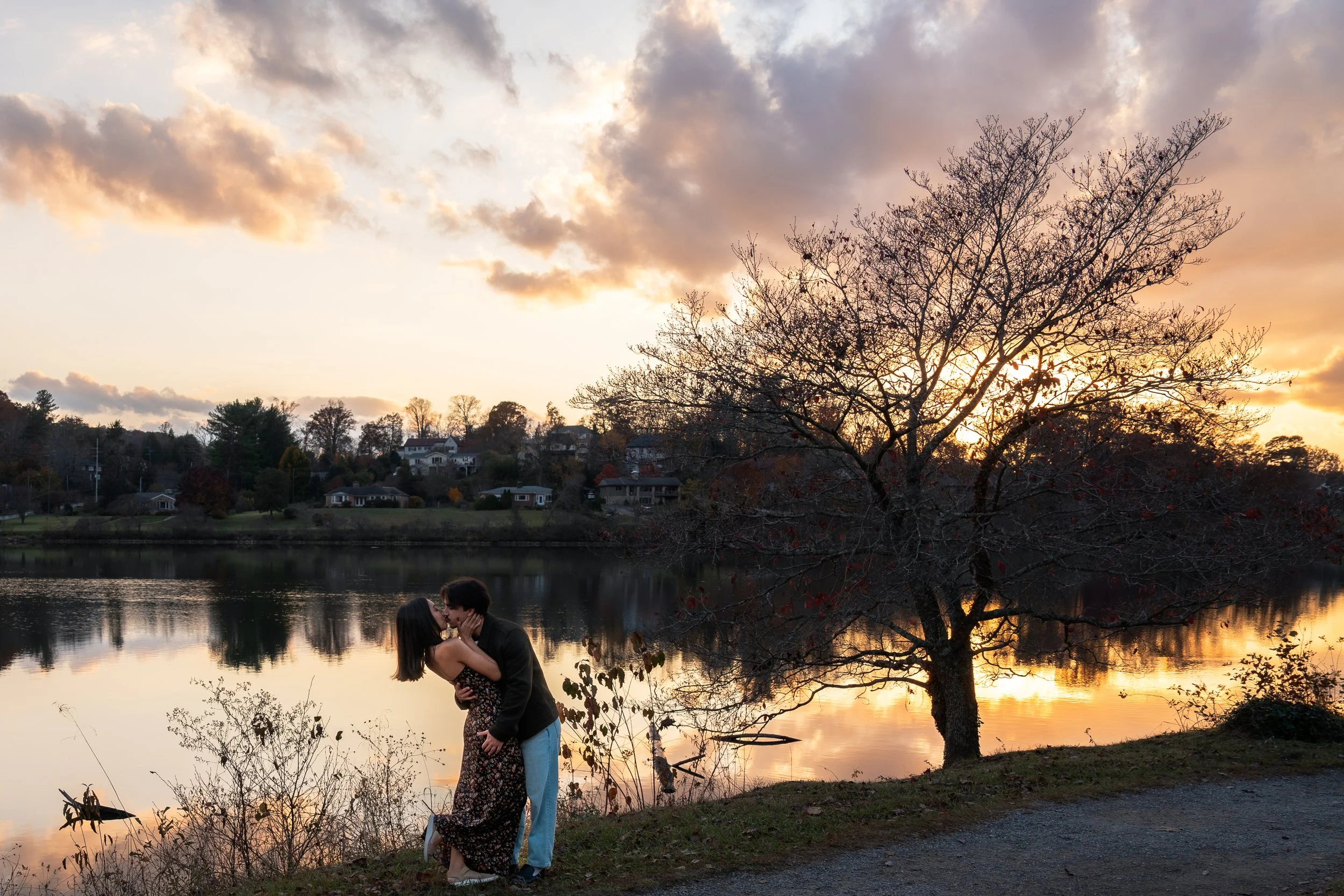 Living in the mountains I am surrounding by dozens of gorgeous outdoor locations- forests, overlooks, rivers and waterfalls. If nature speaks to you, there is no better backdrop. For those of you who are not into hiking, and maybe prioritize looking the picture of elegance for your engagement shoot- you can focus on creative art deco buildings downtown, or (with permission) getting photos actually in an art museum, for romance you can look for gardens or the Biltmore Estate, maybe you crave the urban landscape, or beautiful murals. The focus can also fall on what you want to do together. I’ve had couples play board games, blow bubbles, pop champagne, bring their dogs to a friendly wine vineyard, have a picnic, dance, cosplay their favorite fairy tale, have a mud fight, and even take a bubble bath together! I’m still hoping one day a couple is going to have an epic light saber battle!